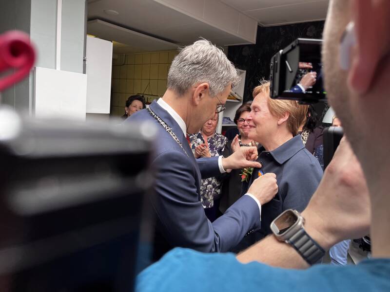 Vanochtend was het groot feest bij Dress for Success Maastricht. Coördinator Anneke Janssen werd onlangs 75 jaar, ze is nu tien jaar het hart en de ziel van Dress for Success Maastricht, en letterlijk de kroon op haar fantastische werk: Anneke werd geëerd met een lintje!